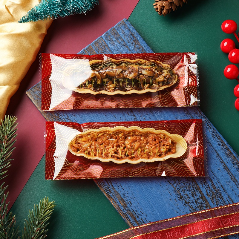 100 Túi bánh Lưỡi Mèo, Túi đựng bánh Thuyền, bánh Biscotti - ĐỎ GỢN SÓNG