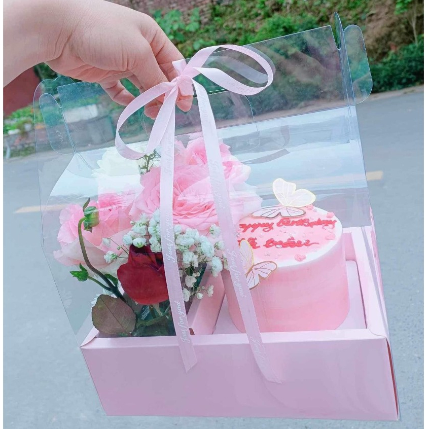 Hộp Vali 2 Ngăn Chữ Love, Hộp Nhựa Trong Quai Xách Đựng Hoa & Bánh, Hộp Quà tặng, Hộp Hoa tươi, 14/2, 8/3, 20/10, 20/11 - Hồng quai CAO